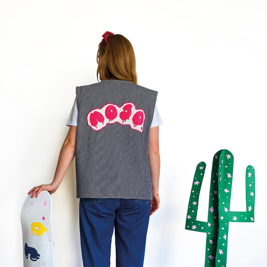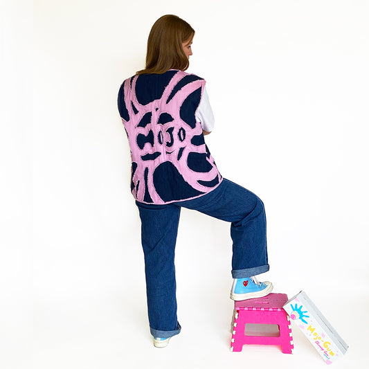 Gilet en laine bouillie (broderie et peinture 100%handmade)