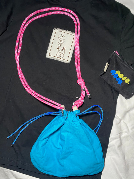 MojoBourse en double gaze de coton denim bleu et coton turquoise 🐳