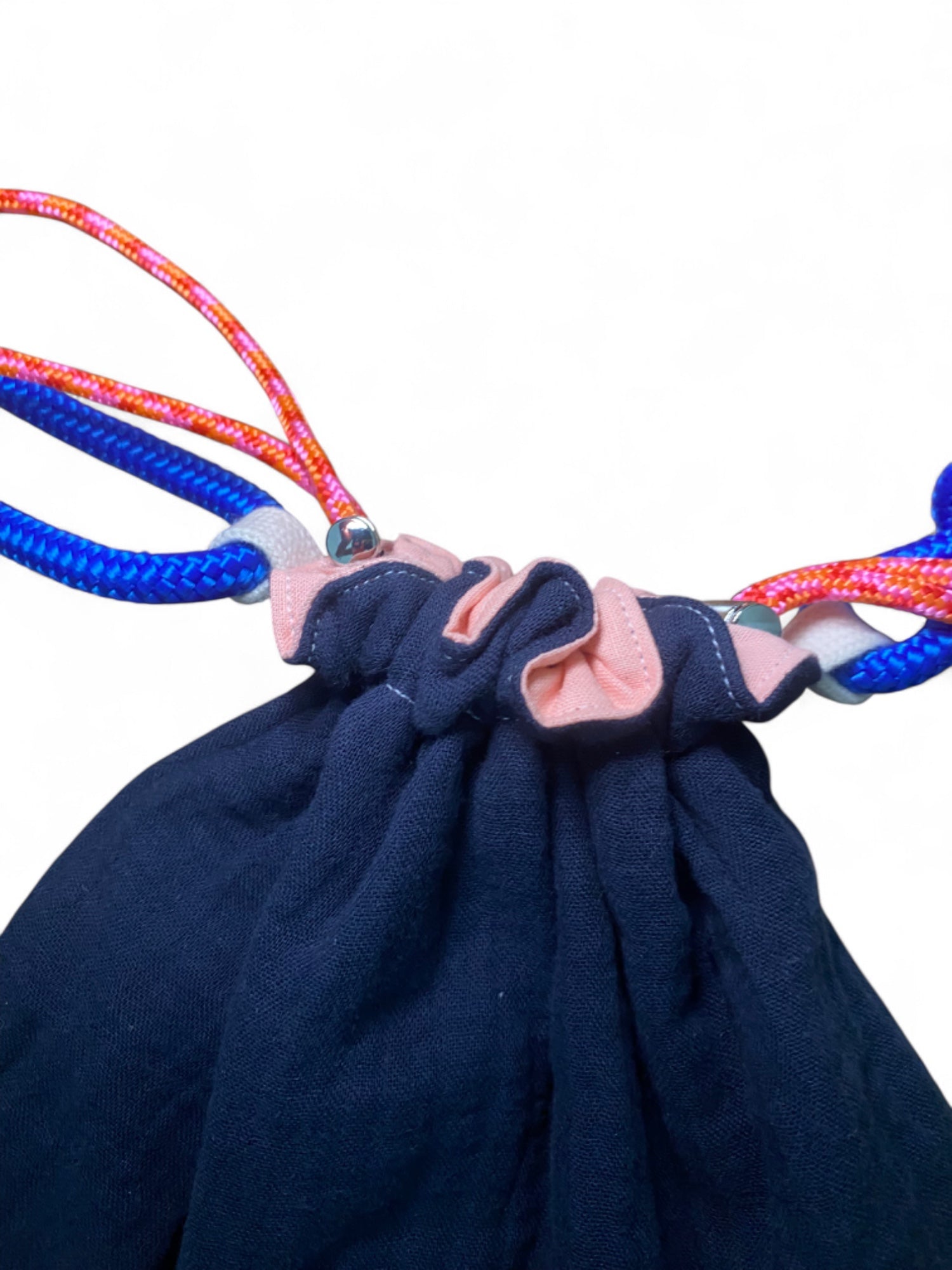MojoBourse 🪁 (triple gaze de coton marine et coton rose pastel/corail)